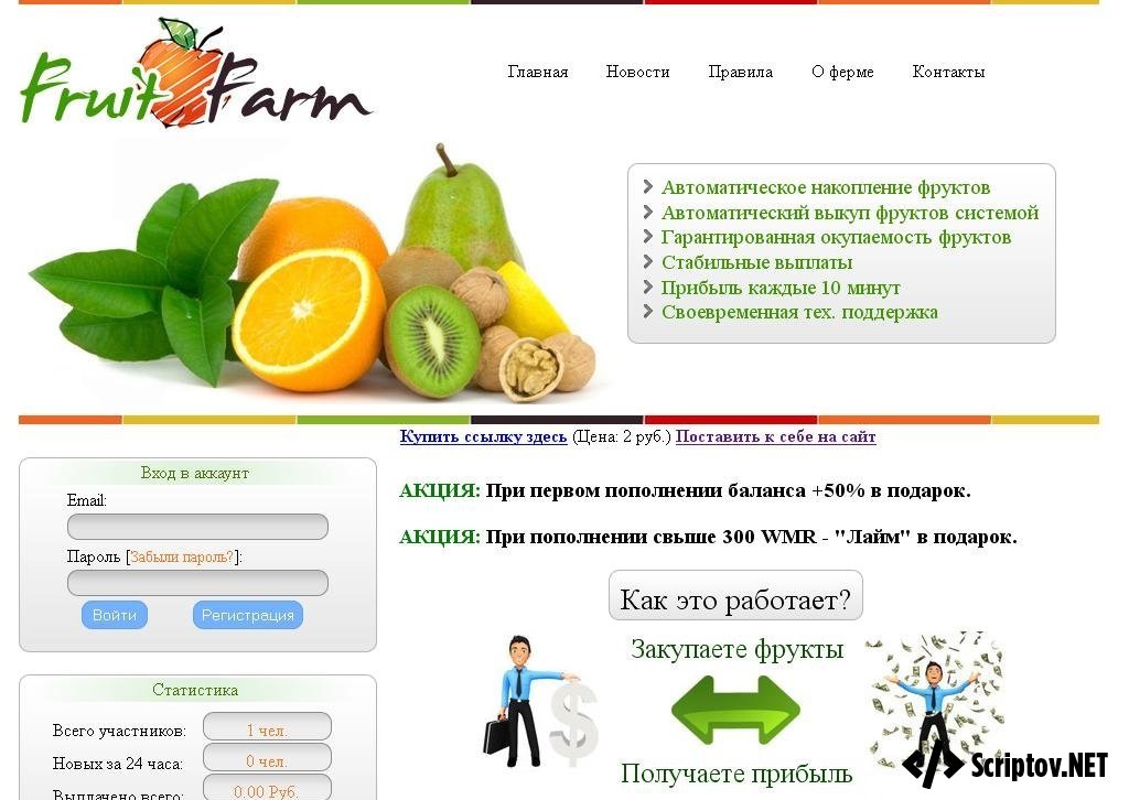 Легендарный оригинальный скрипт FruitFarm. Полностью рабочий. Автоматическое пополнение и выплаты на Payeer.